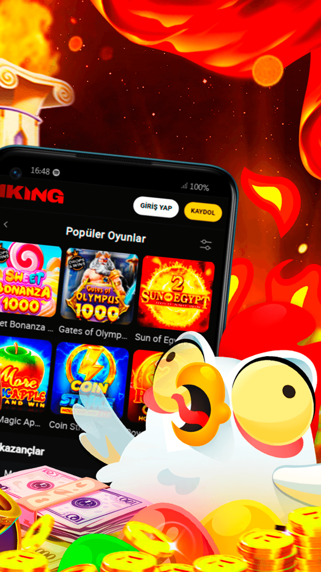 Yüzlerce heyecan verici slot, ikonik masa oyunları ve bolca bonus sizi bekliyor, böylece hemen kazanmaya başlayabilirsiniz! İster deneyimli bir oyuncu ister yeni başlayan biri olun, 1King size benzersiz, güvenli ve adrenalin dolu bir deneyim sunuyor!